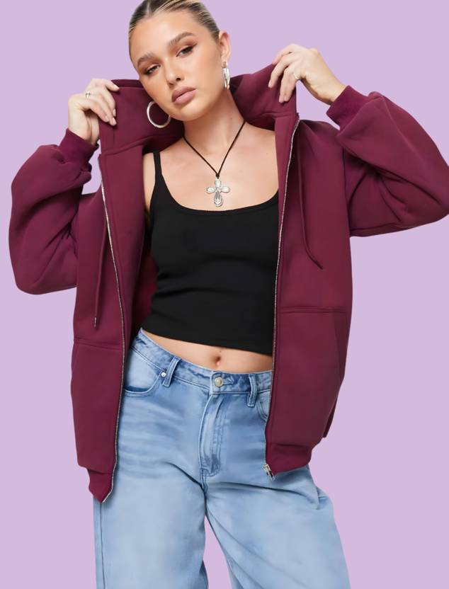 this Women Solid Full Sleeve Hooded Neck Sweatshirt. Crafted from premium fleece fabric, it offers ultimate comfort, softness, and warmth throughout the day. Designed with a front zipper closure, it allows easy wear and adjustable ventilation, making it perfect for all-day use. The hooded neck design adds an extra layer of protection against cold winds, while giving you a trendy, sporty look.