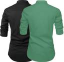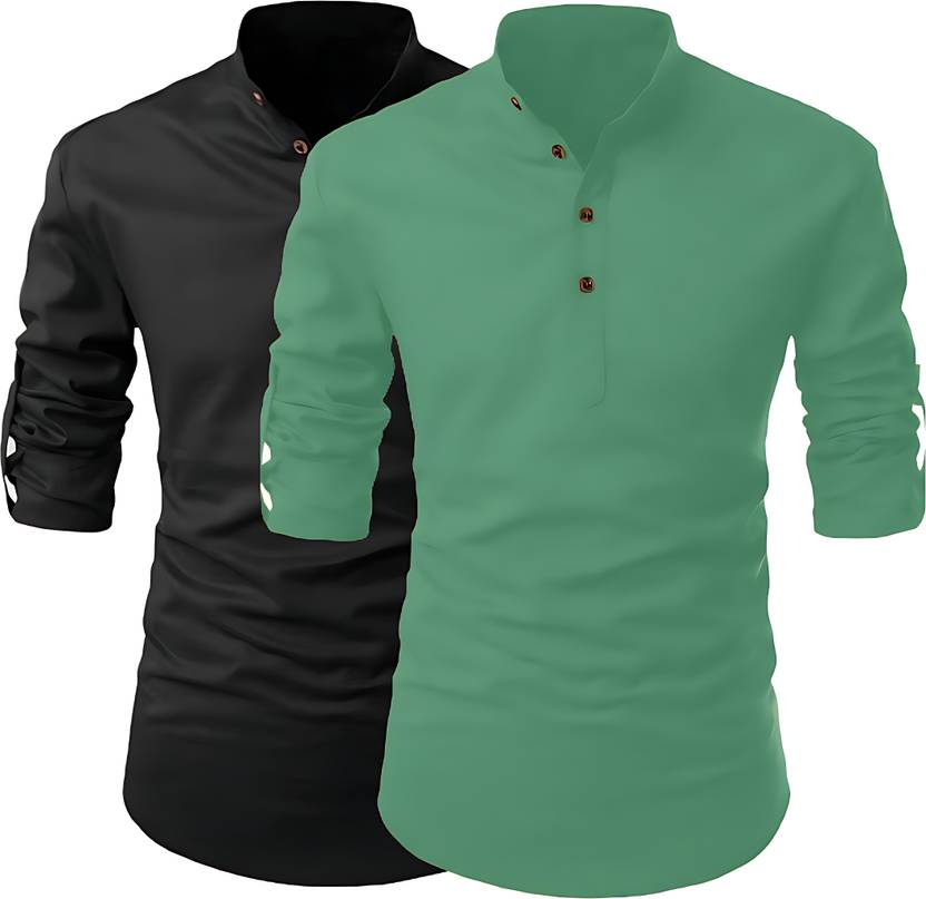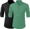 Men Solid Cotton Blend Straight Kurta ( BLACK & FOREST GREEN )