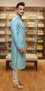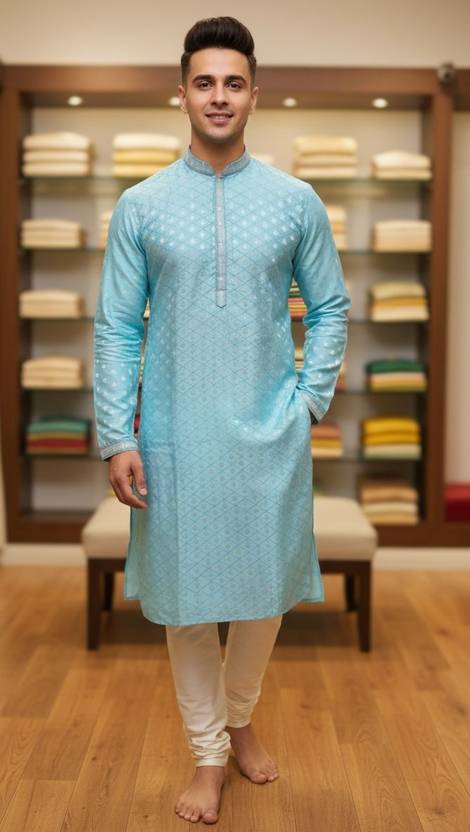 Discover comfort and class with this gorgeous Light Blue Kurta. The fabric features a subtle, textured self-design that offers a premium feel and a soft drape. Ideal for both daytime events and evening gatherings, its breathable nature ensures you stay cool and comfortable through any season. This versatile piece is a must-have for the man who values sophistication and ease.