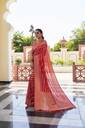 Details : | Color: Red Saree - Red Blouse - Red Border - Red Pallu | | Fabric: Banarasi Pure Georgette Saree - Pure Georgette Blouse | | Length: Saree - 5.5 meters, Blouse - 0.8 meters | | Content: 1 saree and 1 unstitched blouse piece | | | Features: Soft finished, comfortable to wear | | Occasion: Party, festive, casual wear, wedding | | Gift idea: Suitable for gifting to loved ones, mom, wife. | ( Overall, this seems like a beautiful and versatile saree that can be dressed up or down depending on the occasion. )