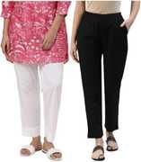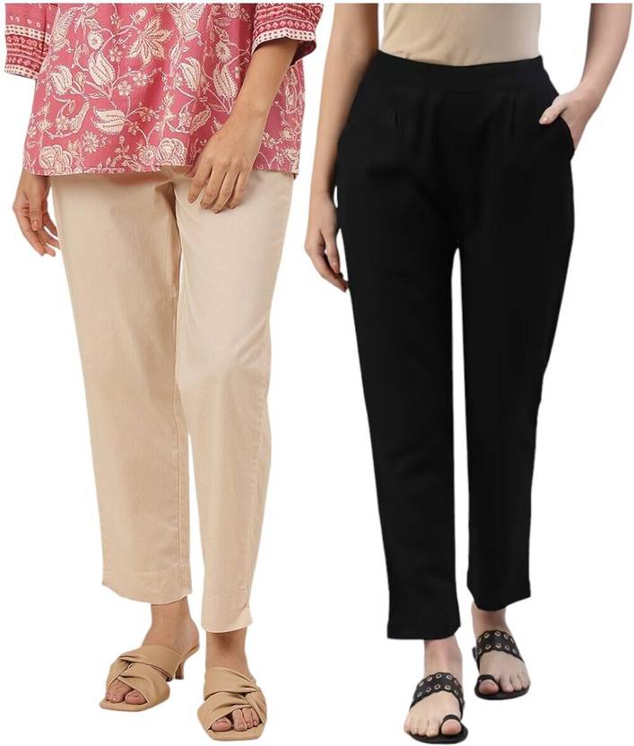 An amazing range of women Pants & Trousers in soft and solid colors that looks perfect for regular wear. With beautiful designs and patterns. These apparels are very stylish and comfortable too. Get rid of the 'regular' look this season wearing Trousers by KASHISHIYA. With a perfect blend of comfort, This Black&Natural Solid Regular Mid Rise Waist Pant from KASHISHIYA exhibits Elasticated Waist-line & 1 Pockets. Tailored from Cotton Slub. Outseam Length: 37 & Inseam Length: 26