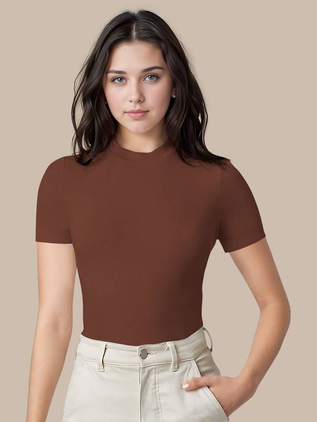 Navyankaa Casual Polyester Blend High Neck Short Sleeves stylish Coffee Top(17"Inch)