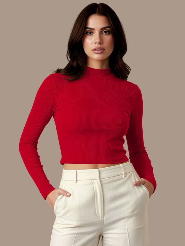 Dream Beauty fashion CasualPolyester Blend Round Neck Full Sleeves Stylish Red Top(17"Inch)