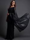 Saree Fabric: Banarasi Silk Blouse: Separate Blouse Piece Blouse Fabric: Georgette Pattern: Embellished Blouse Pattern: Same as Saree Net Quantity (N): Single Care Instructions: Dry Clean Only Fit Type: Regular Saree Details : Saree Color- Black, Saree Material- Georgette,Saree Print- Sequin work, Saree Work Type- Sequins Embroidery Work Blouse Details: Blouse Color- Black,, Blouse Material-Satin Silk, Border & Pallu Details: Border Color- Beige, Border Work Type- Sequins Embroidery, Pallu Color - Beige Included Contents: Saree with Unstitched Blouse Piece Occasions: Party, festive, wedding wear, traditional wear. Best gift for your loved ones. Sizes: Free Size (Saree Length Size: 5.5 m, Blouse Length Size: 0.8 m) Country of Origin: India