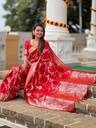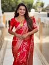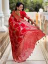 ADESHETHNICWEAR Self Design Banarasi Art Silk Saree (Red)