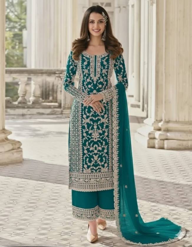 Enhance your festive and party look with this elegant women’s semi-stitched net suit set designed with intricate embroidery. Crafted from premium-quality net fabric, the suit features fine thread and sequin detailing that adds a graceful shimmer. The soft inner lining ensures all-day comfort while maintaining a rich, structured drape. This semi-stitched design allows easy customization to your perfect fit and style preference. Paired with a beautifully matching dupatta, this ensemble is ideal for weddings, festive celebrations, evening functions, and special occasions where elegance is essential.