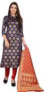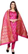 Add richer looks to your persona in this Woven Silk dress material. This banarasi jacquard suit comes along with unstitched jacquard silk bottom and banarasi