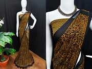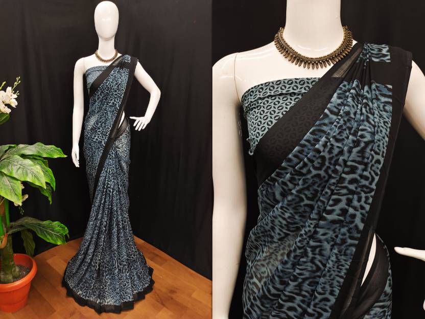 kashvi sarees Animal Print Bollywood Georgette Saree (Light Blue, Black)