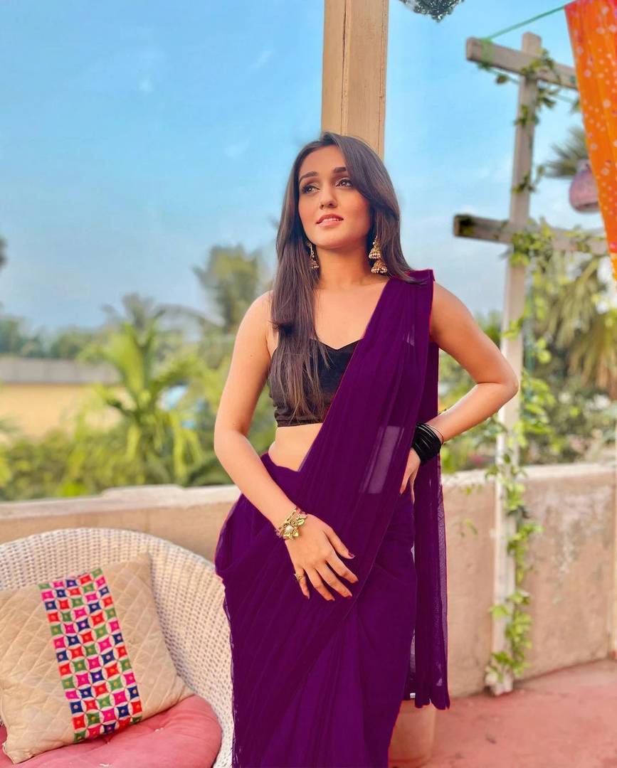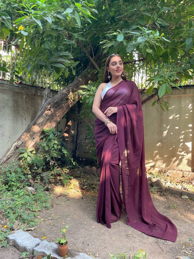 kashvi sarees Dyed, Solid/Plain Bollywood Georgette Saree (Brown)