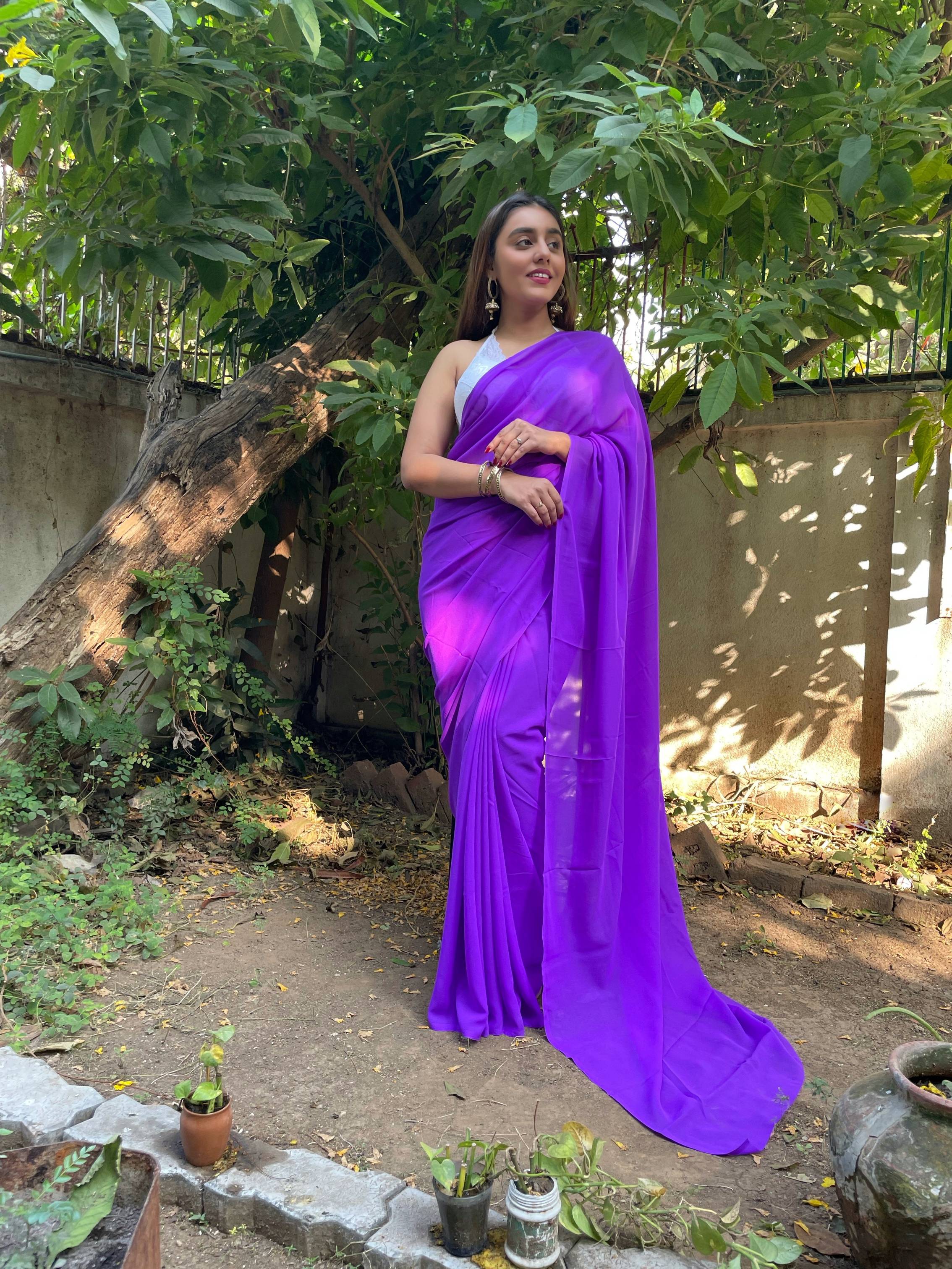 kashvi sarees Dyed, Solid/Plain Bollywood Georgette Saree (Purple)