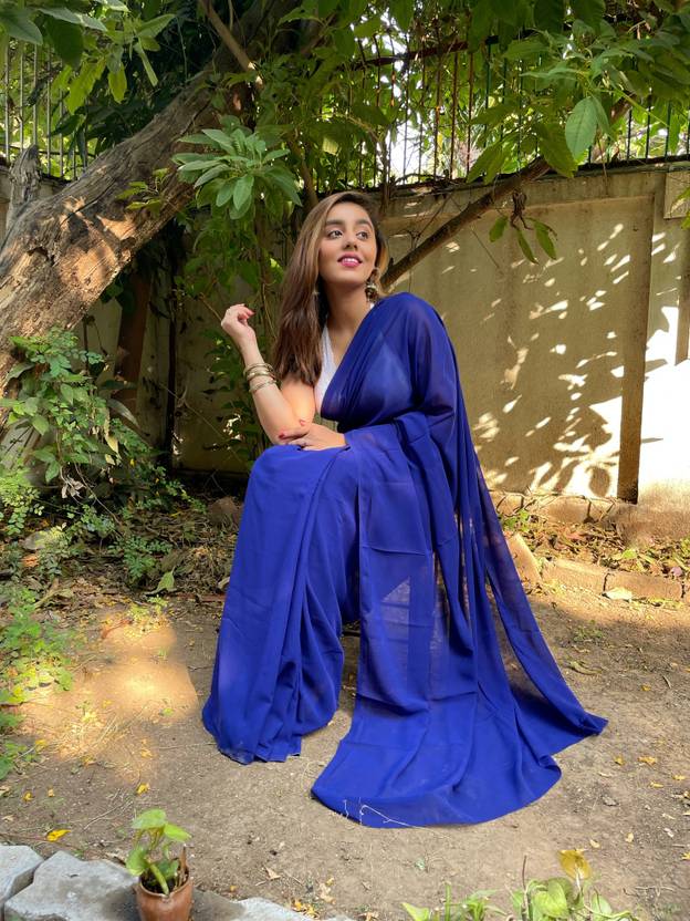 kashvi sarees Dyed, Solid/Plain Bollywood Georgette Saree (Blue)
