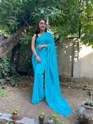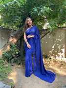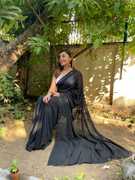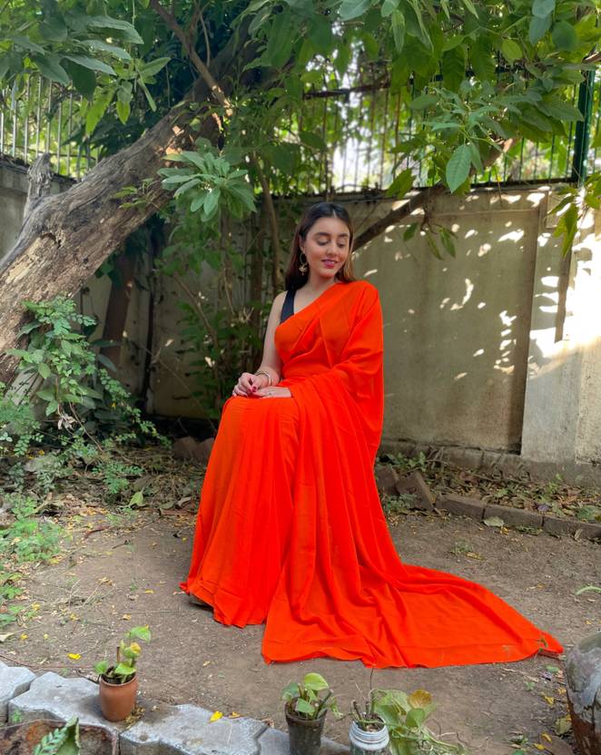 kashvi sarees Dyed, Solid/Plain Bollywood Georgette Saree (Orange)