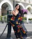 kashvi sarees Floral Print Bollywood Georgette Saree (Black)