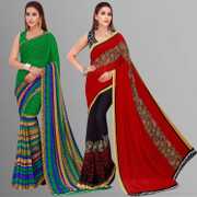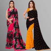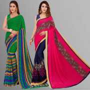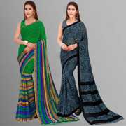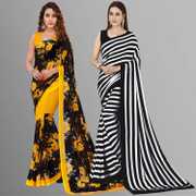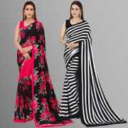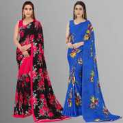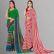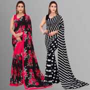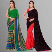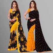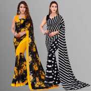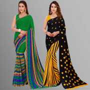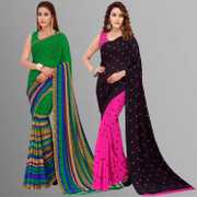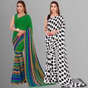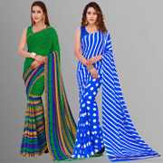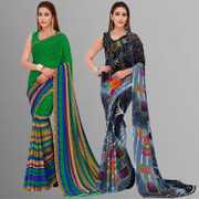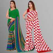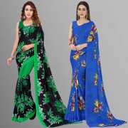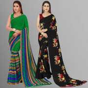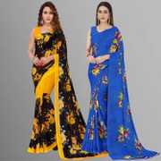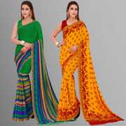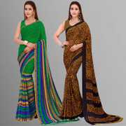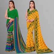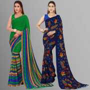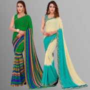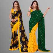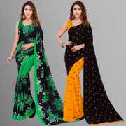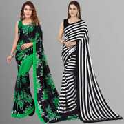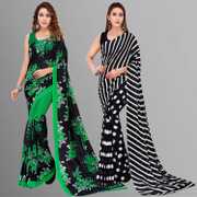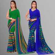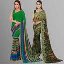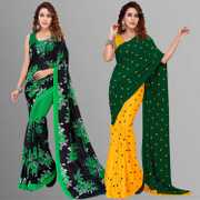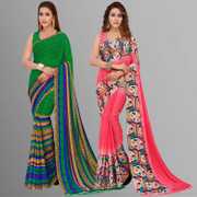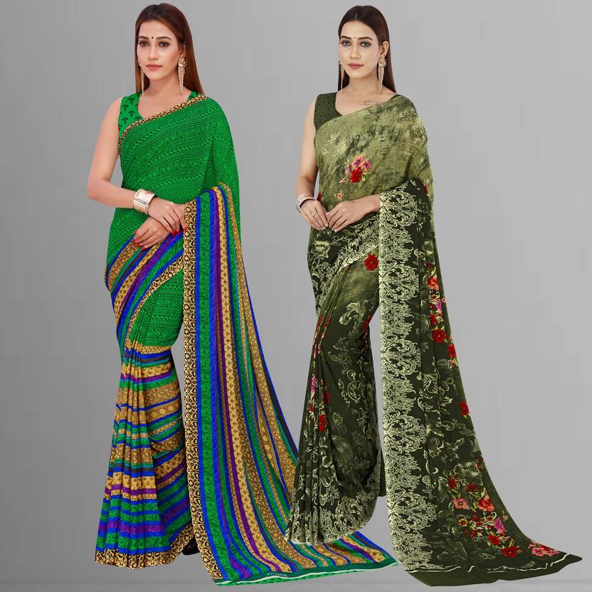 kashvi sarees Floral Print Daily Wear Georgette Saree (Pack of 2, Green)