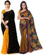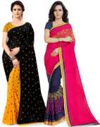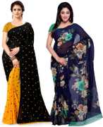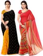 kashvi sarees Polka Print Daily Wear Georgette Saree (Pack of 2, Red, Black)