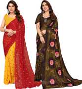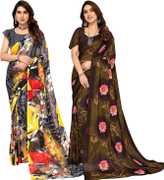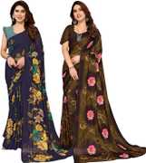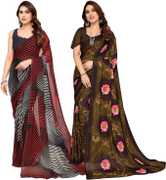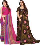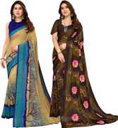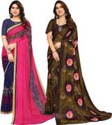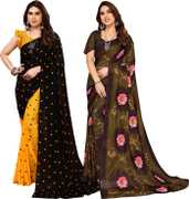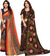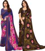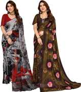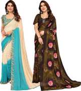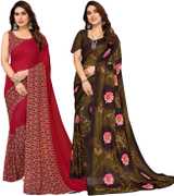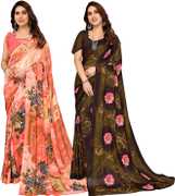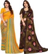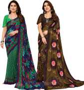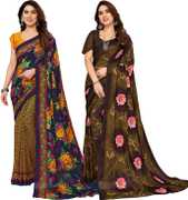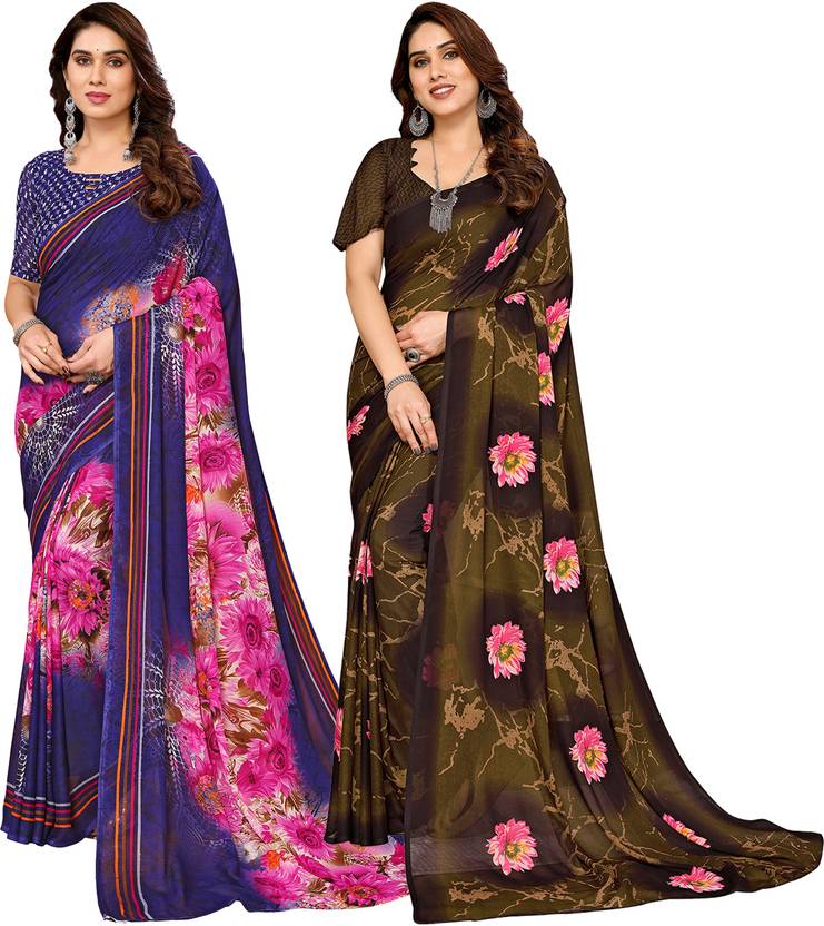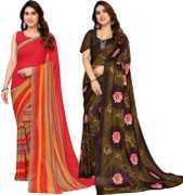 Daily Wear Printed Saree, 5.25 Meters Of Saree Length, Casual Wear Regular Saree With Un-Stitched Blouse Piece, 0.75 Meters Of Blouse Piece Length, Faux Georgette Pack Of 2 Sarees