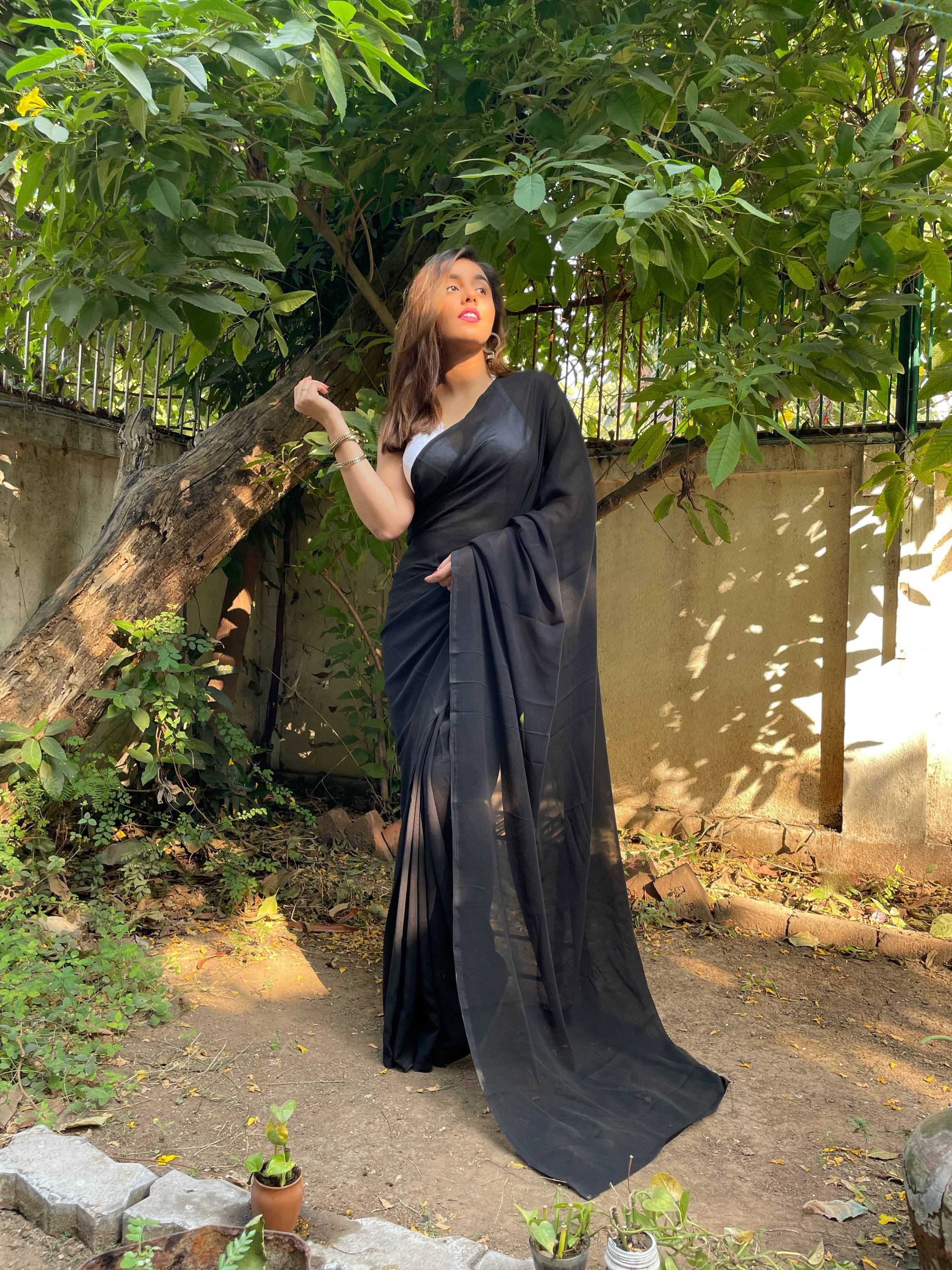 Solid/Plain Bollywood Georgette Saree (Black)