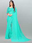 kashvi sarees Solid/Plain Bollywood Georgette Saree (Orange)