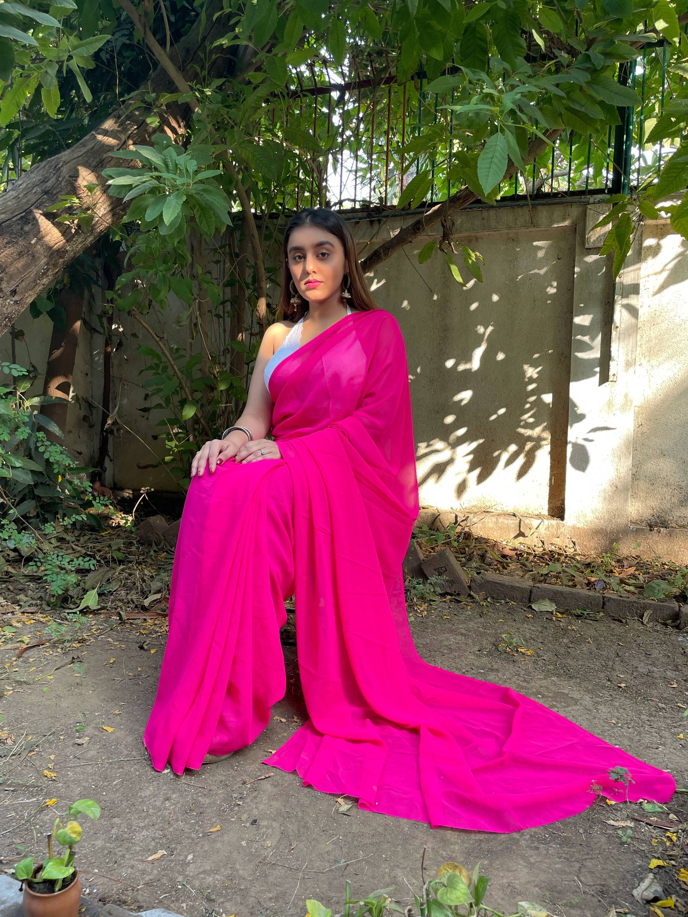 kashvi sarees Solid/Plain Bollywood Georgette Saree (Pink)