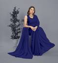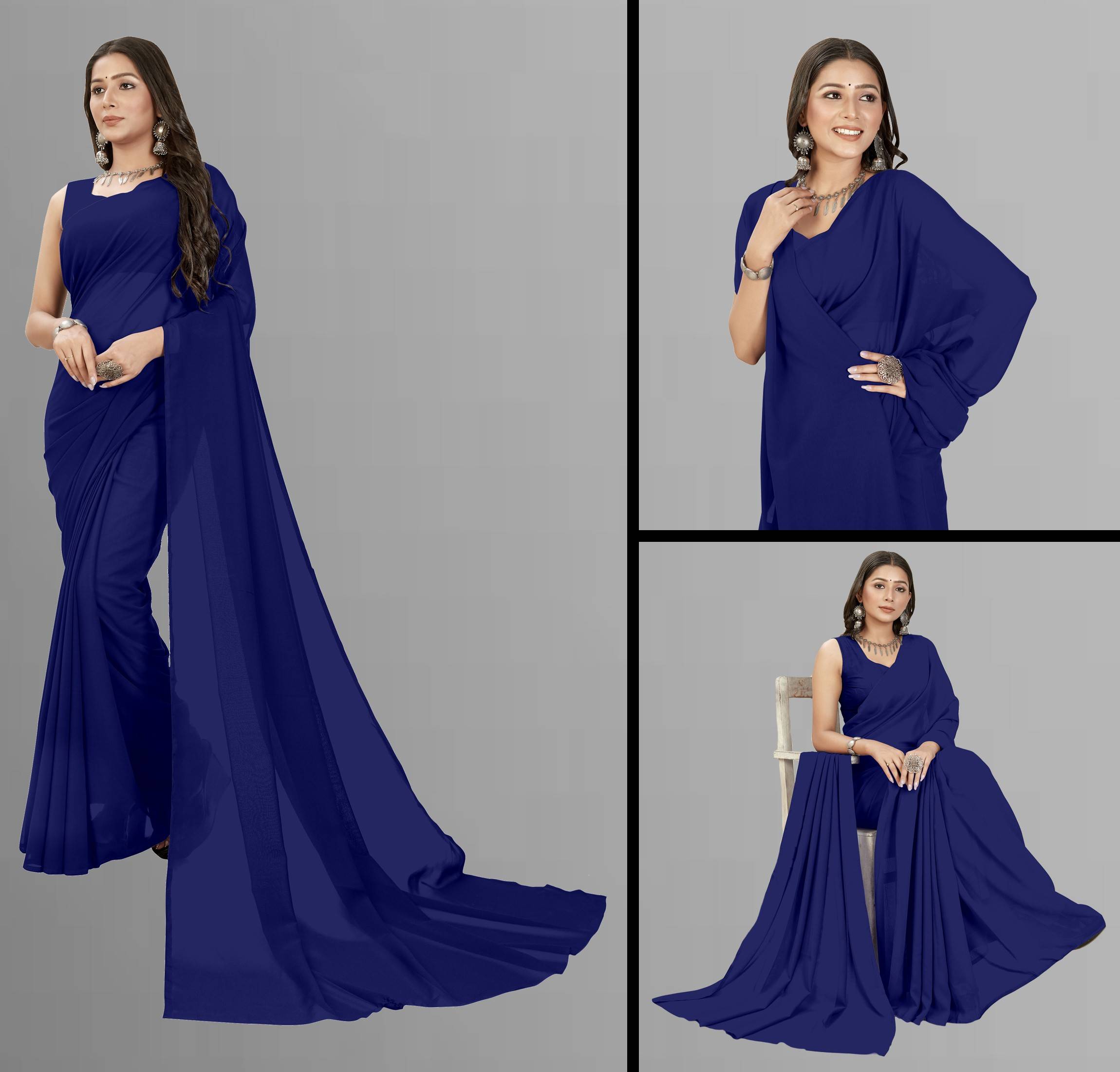 kashvi sarees Solid/Plain Bollywood Georgette Saree (Dark Blue)