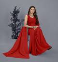 Daily Wear Printed Red Colored Plain Fashion Georgette Regular Sari Having 5.25 Meters Of Length
