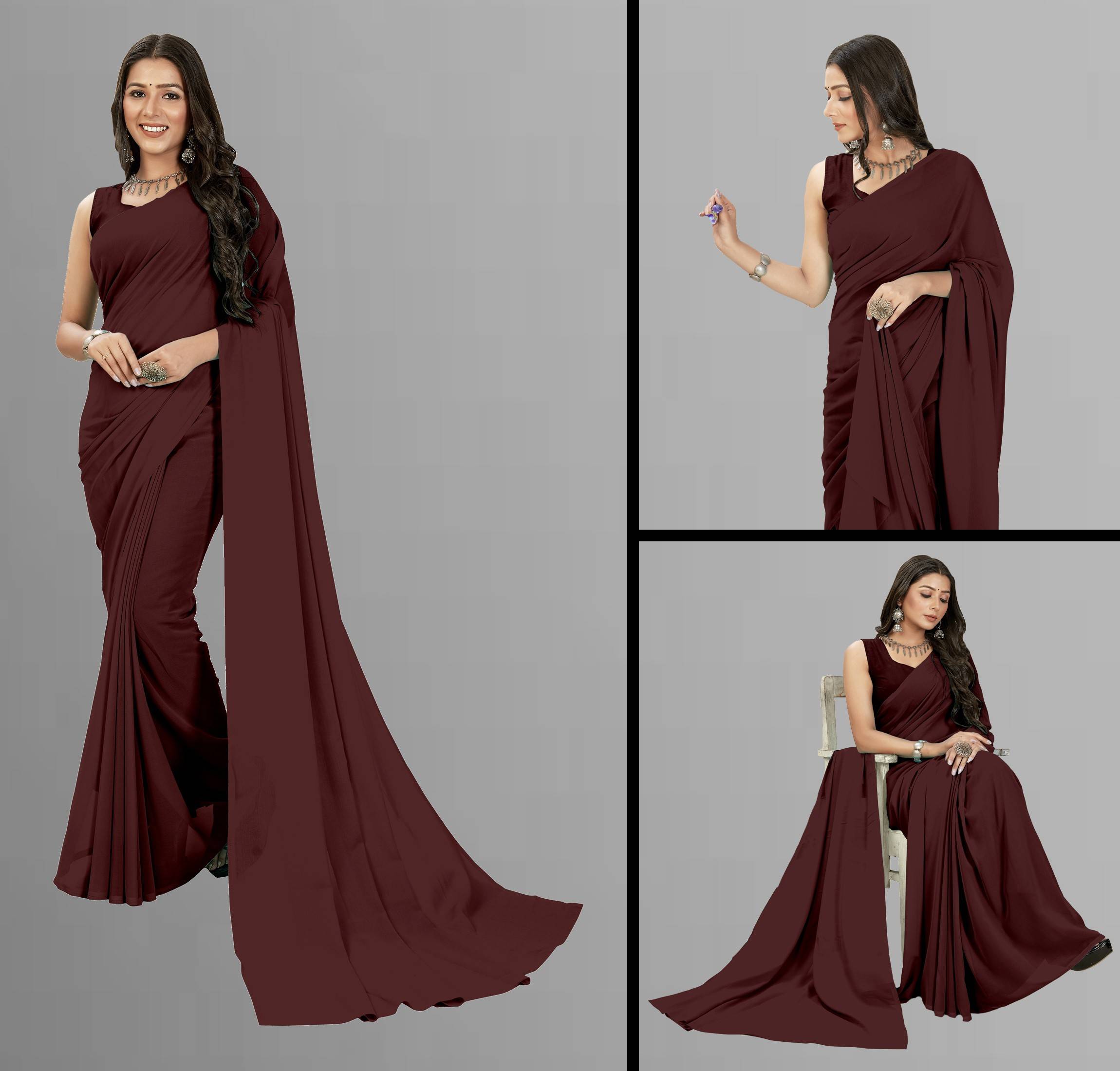 kashvi sarees Solid/Plain Bollywood Georgette Saree (Brown)