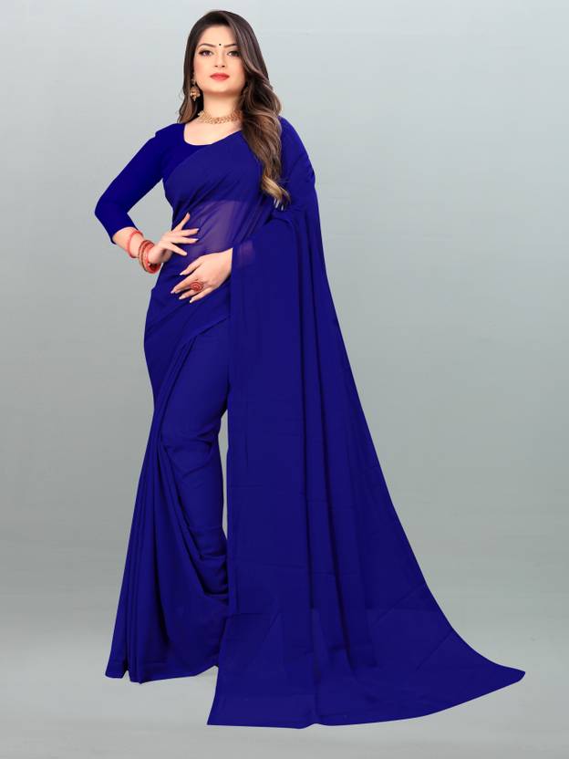 kashvi sarees Solid/Plain Bollywood Georgette Saree (Dark Blue)