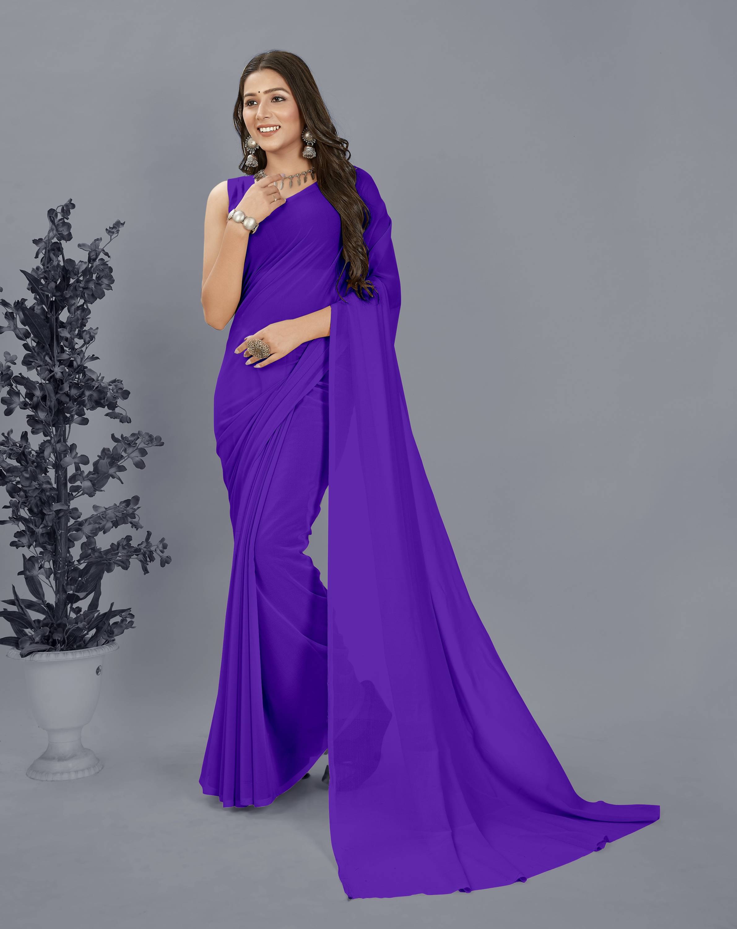 kashvi sarees Solid/Plain Bollywood Georgette Saree (Purple)