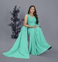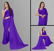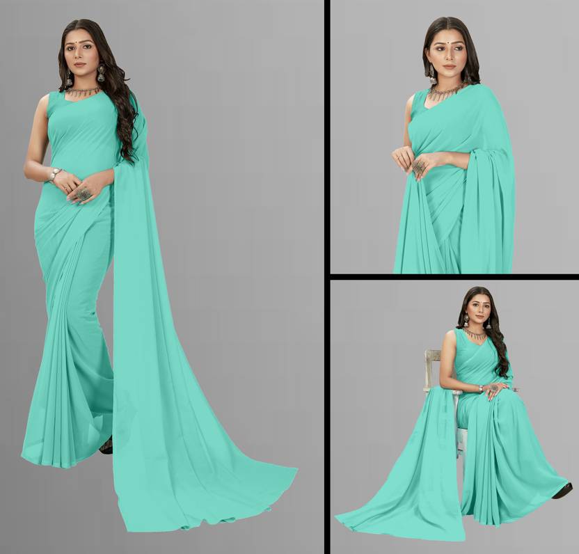 Daily Wear Printed Light Blue Colored Plain Fashion Georgette Regular Sari Having 5.25 Meters Of Length