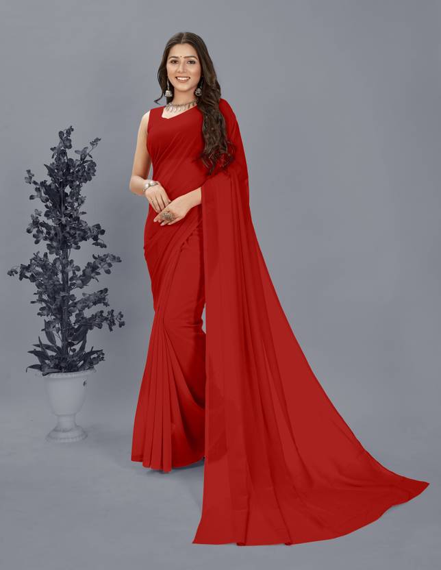 kashvi sarees Solid/Plain Bollywood Georgette Saree (Red)