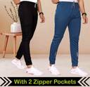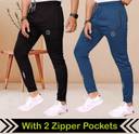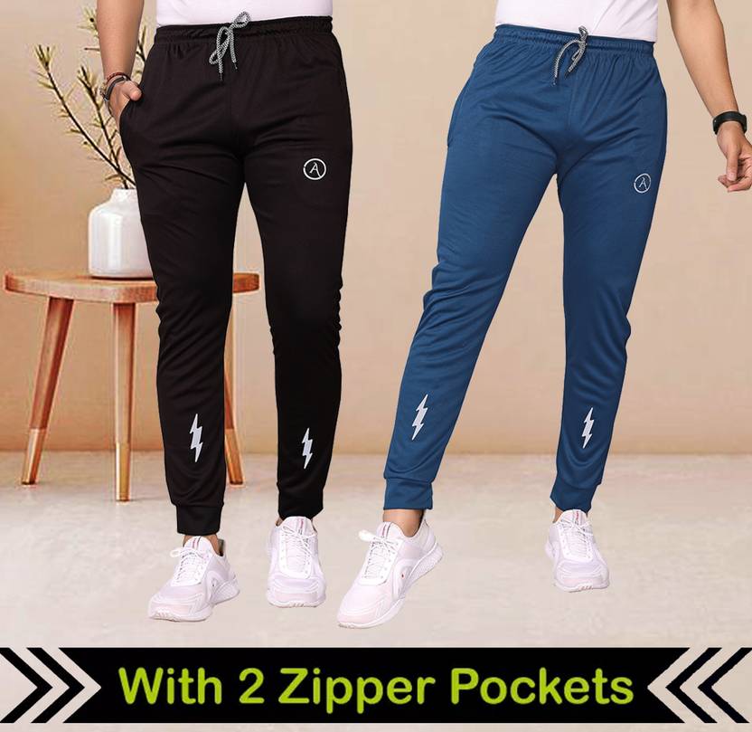Pack of 2 Men Self Design Black, Blue Track Pants