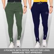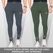 Pack of 2 Men Printed Grey, Dark Green Track Pants