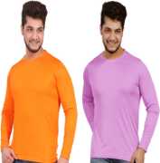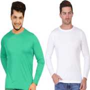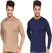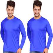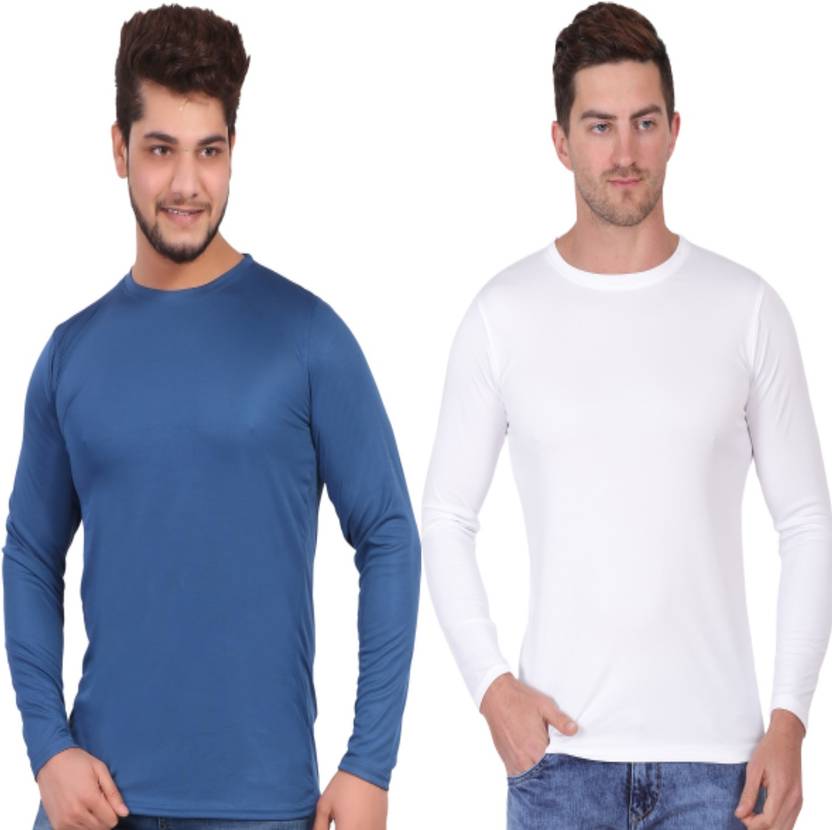 KASPY Pack of 2 Men Solid Round Neck Polyester Blue, White T-Shirt