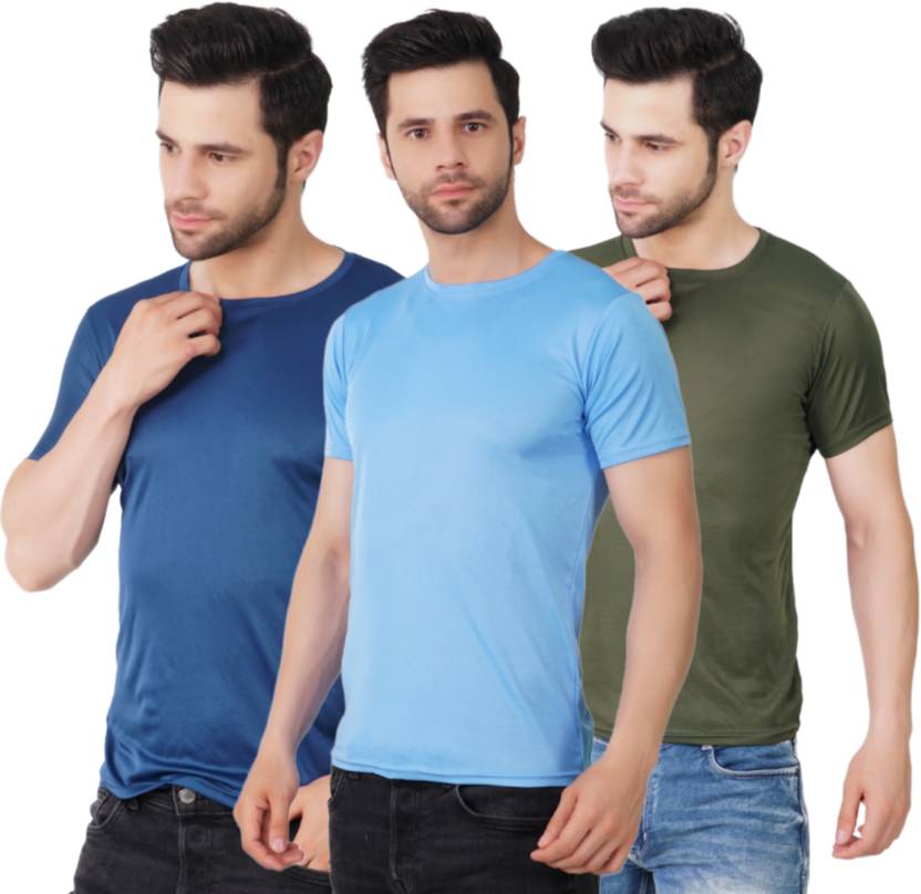 KASPY Solid Men Round Neck Dark Blue, Light Blue, Dark Green T-Shirt