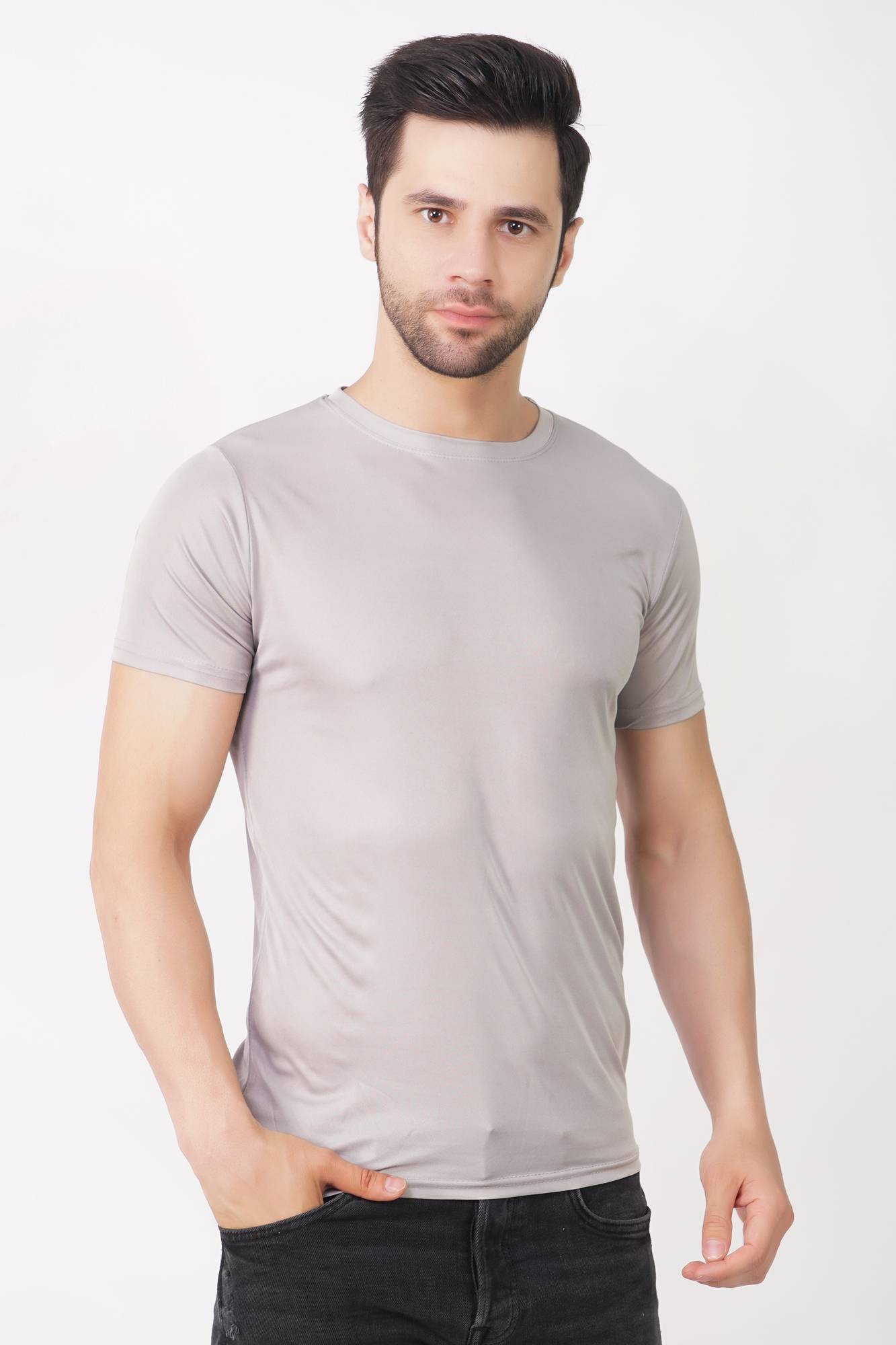 KASPY Men Solid Round Neck Polyester Grey T-Shirt