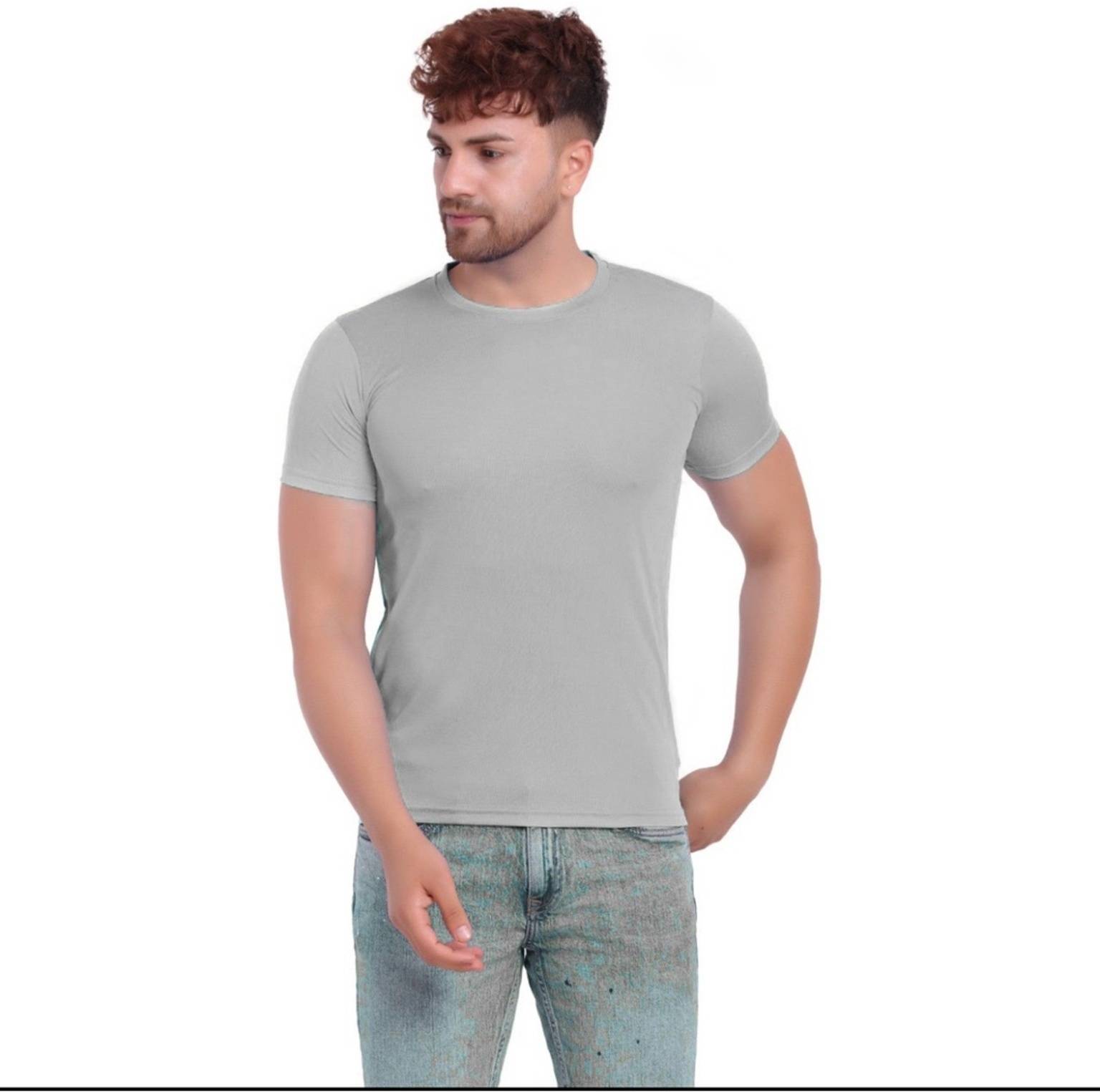 KASPY Men Solid Round Neck Polyester Grey T-Shirt