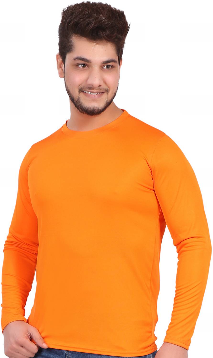 KASPY Men Solid Round Neck Polyester Orange T-Shirt