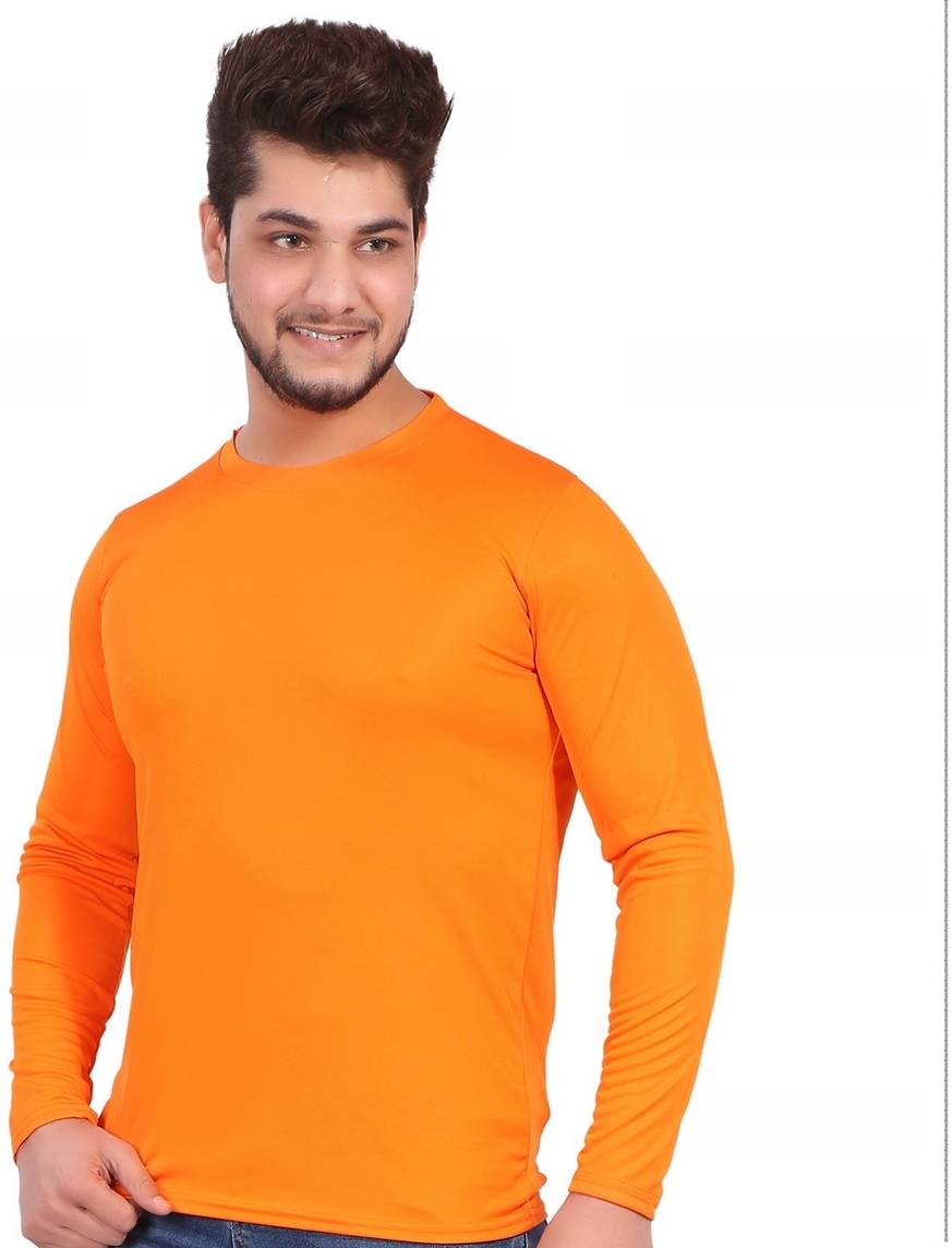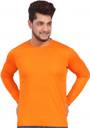 KASPY Men Solid Round Neck Polyester Orange T-Shirt
