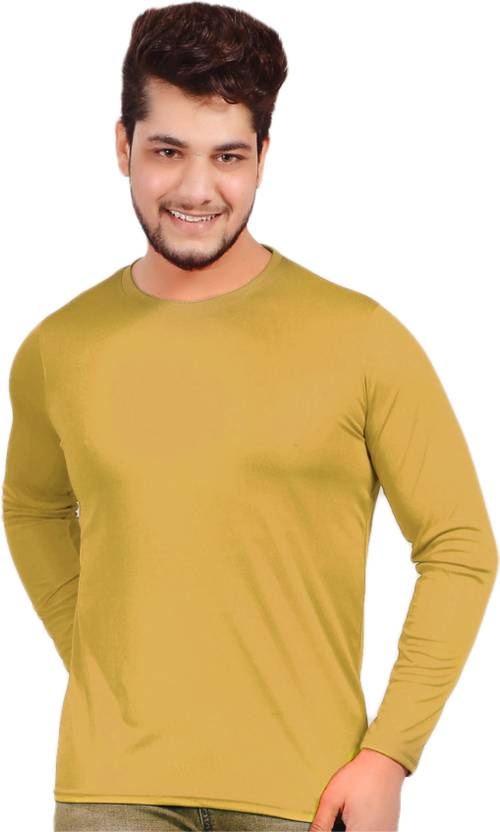 KASPY Men Solid Round Neck Polyester Yellow T-Shirt