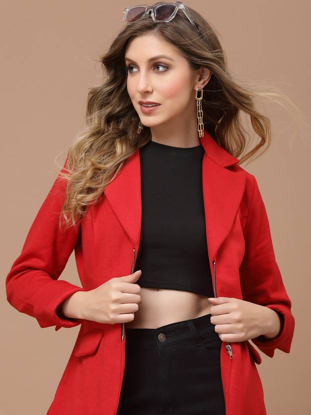 KASSUALLY Solid Single Breasted Casual Women Blazer (Red)
