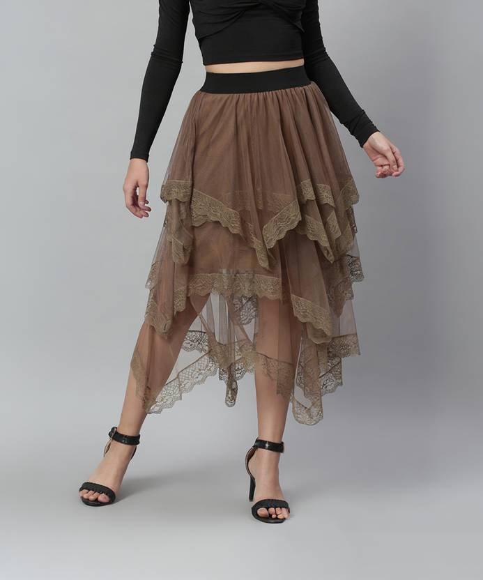 KASSUALLY Self Design Women Layered Brown Skirt