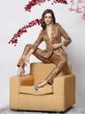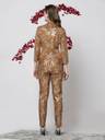 Tan brown printed trousers with zip closure and two pockets