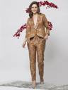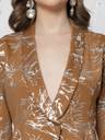 Tan brown printed blazer, has shawl collar, long sleeves and button closure