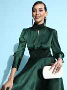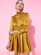 Opt for an easy-going style by wearing this effortlessly stylish dress. This dress will add glam to your look with its solid pattern and long sleeves
