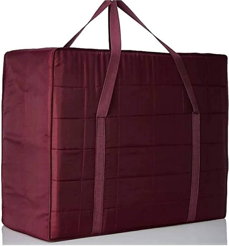 Burgundy, Dual Handles Storage Bag, Zippered Closure, Suitable for Blankets, Bedding, Saree Storage