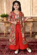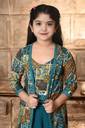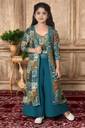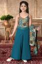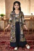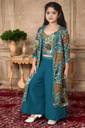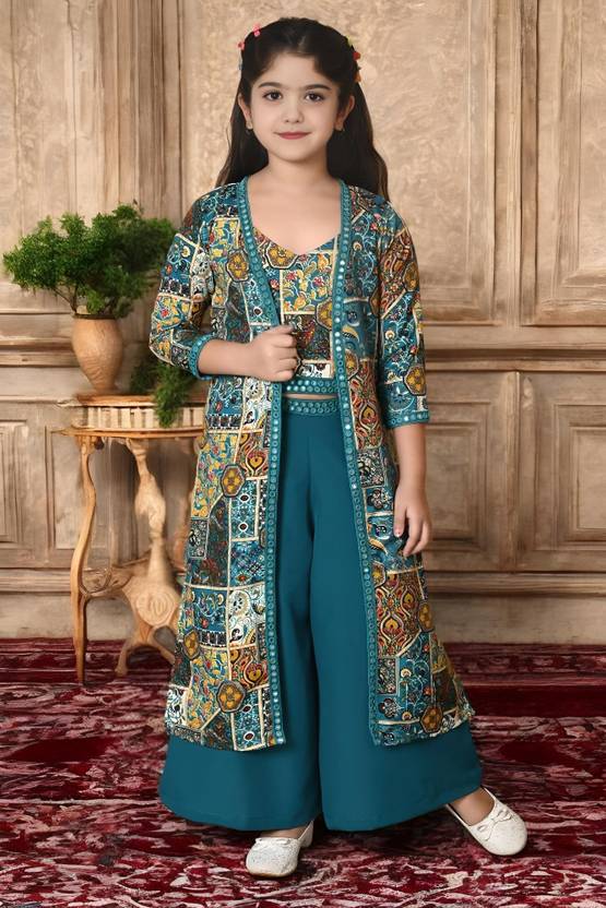 Let your little one shine in this Elegant Teal & Mosaic Printed Girls' 3-Piece Outfit , a perfect blend of tradition and modern style. This stunning ensemble includes a printed kurti, a matching jacket, and wide-leg palazzo pants , offering both comfort and elegance.