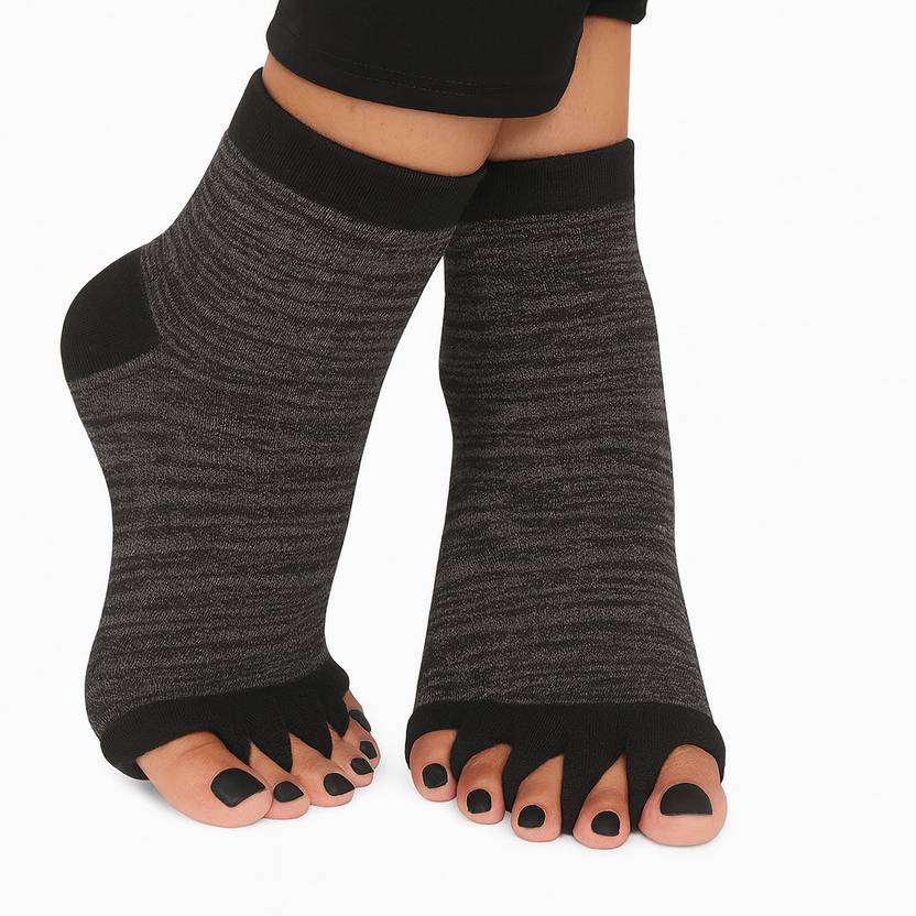 Designed with toe separators and stretchable knit fabric, these socks help in correcting toe alignment, improving blood circulation, and reducing foot pain.