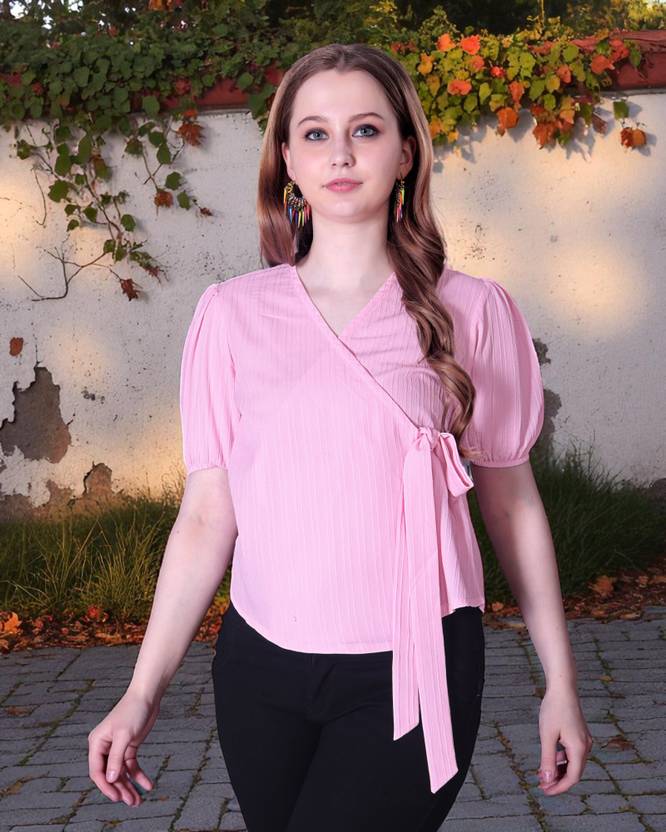 Maroon regular top Solid Lapel collar, three-quarter, regular sleeves sleeves Detail Knitted and woven crepe Closure
