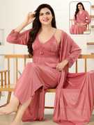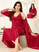 Indulge in the allure of the Kattly 2-piece nighty. Crafted from luxurious Malai satin, this mystique set features half sleeves adorned with delicate lace, accentuating the sleeves` borders and chest area. With adjustable straps for the perfect fit, this nighty exudes both elegance and sensuality. Style: 2-piece Nighty Fabric: Malai Satin Color: Mystique Grey NOTE: The Model is wearing L size.