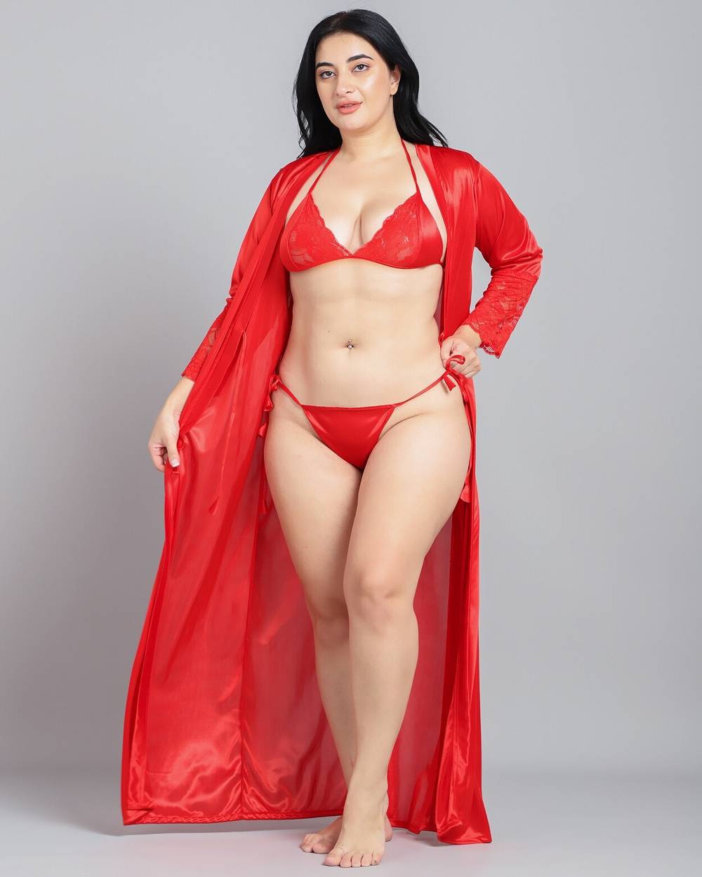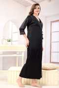 Indulge in the allure of the Kattly 2-piece nighty. Crafted from luxurious Malai satin, this mystique set features half sleeves adorned with delicate lace, accentuating the sleeves` borders and chest area. With adjustable straps for the perfect fit, this nighty exudes both elegance and sensuality. Style: 2-piece Nighty Fabric: Malai Satin Color: Mystique Grey NOTE: The Model is wearing L size.